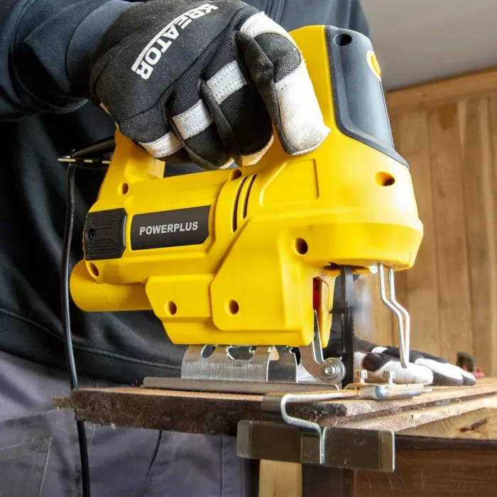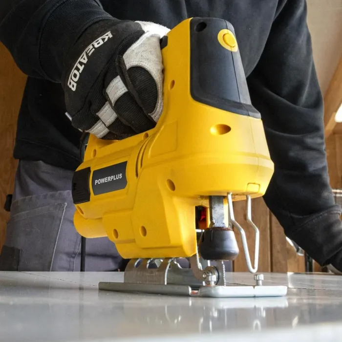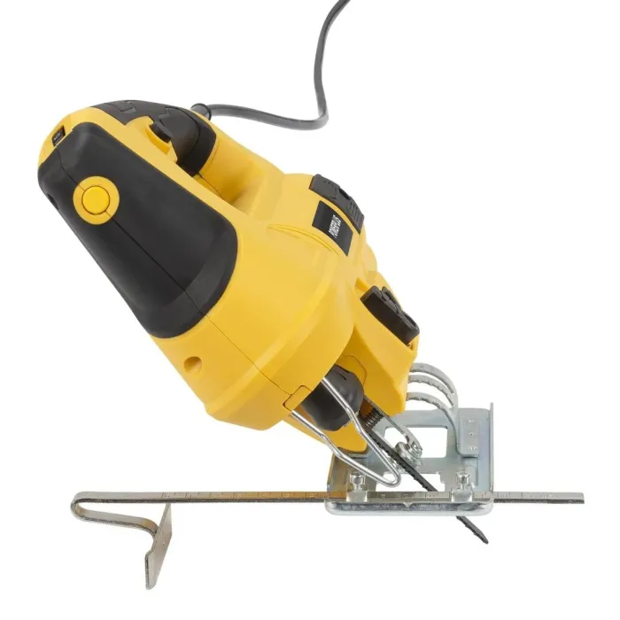 Този прободен трион може да се използва за изрязване на неправилни форми, но също така и за създаване на прави или наклонени разрези. Той е оборудван със здрава странична направляваща релса и регулируема обувка. Можете да режете до 8 мм в стомана, 20 мм в пластмаса и до 65 мм дълбочина в дърво. Този прободен трион с мощност 600 W е универсален инструмент, който може да се използва за много различни проекти с рязане в и около къщата. Използвайте го, за да правите перфектно прави, наклонени или по-сложни разрези. Използвайте страничния водач, за да режете наравно с ръба на детайла.