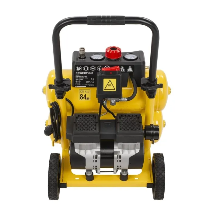 Компресор не изисква масло, което го прави много лесен за поддръжка. И не се притеснявайте за вашия слух или слуха на съседа си: този безшумен компресор генерира много по-малко шум от подобни модели. Този компресор с мощност 850 W осигурява сгъстен въздух, така че можете да го свържете към пневматични инструменти или да го използвате като въздушна помпа. Благодарение на двата си резервоара за въздух можете да работите по-дълго без прекъсвания и те осигуряват по-стабилно подаване на въздух.