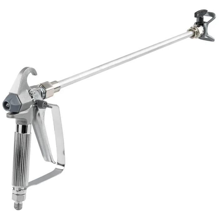 Моделът 517 е подходящ за емулсионни и латексови бои, което улеснява боядисването на стени и тавани. Различните размери на дюзите ви позволяват да работите както върху по-големи повърхности, така и върху по-сложни зони. Получавате гъвкавост, без да е необходимо да купувате допълнителни компоненти, за да започнете.