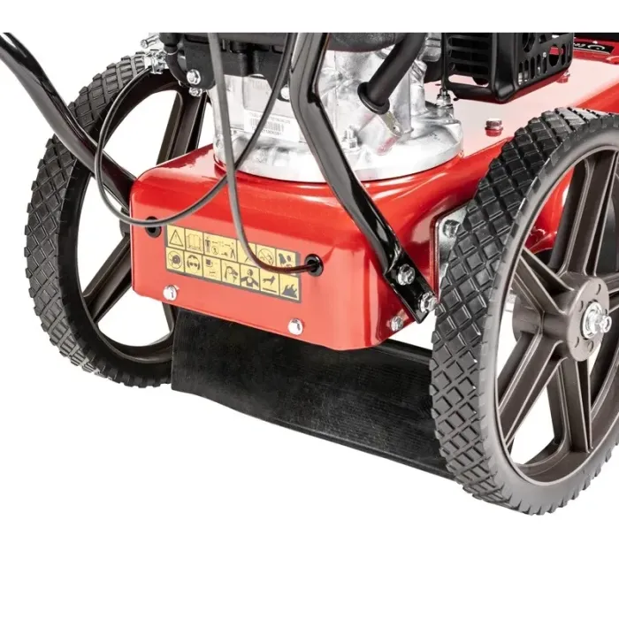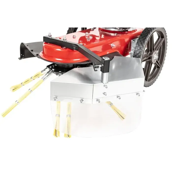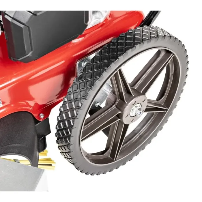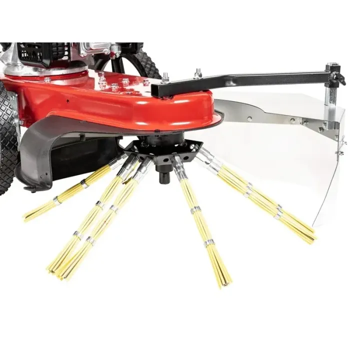 Четките са комбинация от метални и пластмасови пръти, което осигурява много висококачествена работа. Големите колела със сачмени лагери улесняват маневрирането на плевелите. Предпазител от лявата страна на четките е проектиран да улавя отпадъци, изхвърчащи изпод работния инструмент.