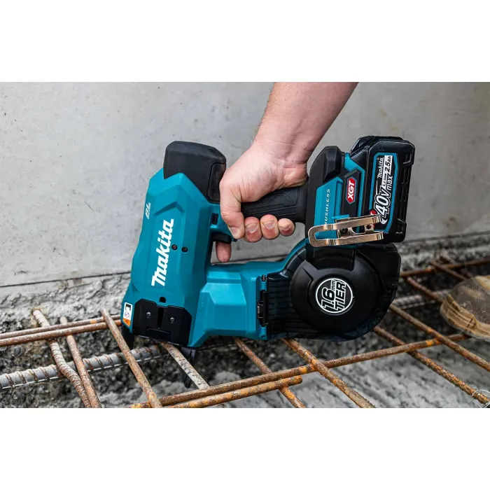 Операторът има на разположение прецизна шестстепенна настройка на силата на затягане, което гарантира сигурност и стабилност на конструкцията независимо от вида на използваните материали. Професионалната акумулаторна машина за връзване на арматура има захранващо напрежение 40 V. Уреда е специално оптимизиран за работа с дебели арматурни пръти и позволява свързването на комбинации от арматура с общ диаметър до 1.6 мм. Оборудвана е с мощен безчетков двигател, който не само удължава живота на инструмента, но и осигурява висока скорост на работа, позволявайки изпълнението на всяка връзка за по-малко от секунда. Машината разполага с технология за екстремна защита XPT - устойчива на прах и водни пръски. Ергономичният дизайн и балансираното тегло позволяват работа с една ръка. Моделът поддържа два режима на задействане – единично за прецизни операции и непрекъснато за бързо преминаване през големи площи, а механизмът за смяна на ролката е проектиран за максимално улеснение на работния процес.