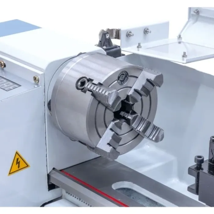 Комплекта включва: тричелюстен патронник 100 mm, предпазител на патронника, държач за инструменти с бърза смяна и 4 вложки, зъбни колела, защита срещу стружки, цифрово отчитане на скоростта, неподвижен център, ръчни колела от метал, инструменти