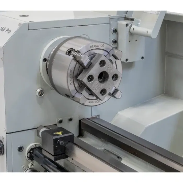 Опашката и шпинделът са регулируеми. Задната част може да се регулира с ± 5 мм за конусно струговане. Стругът за метал Master 165 PRO + 3-осно цифрово отчитане е идеален за обработка на стомана, цветни метали и пластмаси. Тавата за стружки се изтегля отпред, което намалява до минимум изискванията за пространство. Леглото на машината е изработено от чугун, индуктивно закалено и полирано. Шпинделът има висока концентричност (≤ 0,015 мм) и работи в маслена баня. Настройките за контрол на скоростта и подаването са ясно подредени, осигурявайки плавна работа и точен контрол. Електромагнитната крачна спирачка намалява времето за престой.