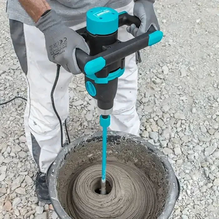 Миксера има 2 работни скорости - 0-410 / 0-650 об./мин и захранващ кабел с дължина 3 м. Подходяща е за смесване на разтвори с тегло до 70 - 80 кг. Разполага със здрав, стабилен и надежден електродвигател и добре смазана с грес на графитна основа скоростна кутия. Електрическата бъркалка за строителни смеси Collomix MIXBRO 150 е със захват Hexafix и мощност 1500 W. Оборудвана е с ергономична ръкохватка, която се състои от две части.