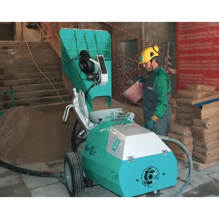Извършва бързо смесване, транспортиране и изпомпване на традиционни замазки, разтвори, микробетон, пясък, и др. Значително намалява разходите за труд, елиминирайки нуждата от издигане на скелета и извършване на ръчен транспорт на материали. Машината за сухи и полусухи замазки е с мощност 2.2 kW и капацитет на резервоара 190 л. Има резервоар издържащ на високо налягане, съдържащ миксер, задвижван от редукторен мотор, при електрическата версия на машините, или хидравличен-при машините с дизелов двигател. Машината може да бъде оборудвана с някой аксесоари и в частност зареждащ скип (бункер в който, докато трае цикълът на разбъркване и изпомпване, се подготвя дозата за следващият цикъл), управляван от хидравлична силова група, в допълнение от скрапер (гребло теглено от въже, посредством което материалът се нагриба в скипа от разстояние до 20м.) и лебедка за навиване на кабела.