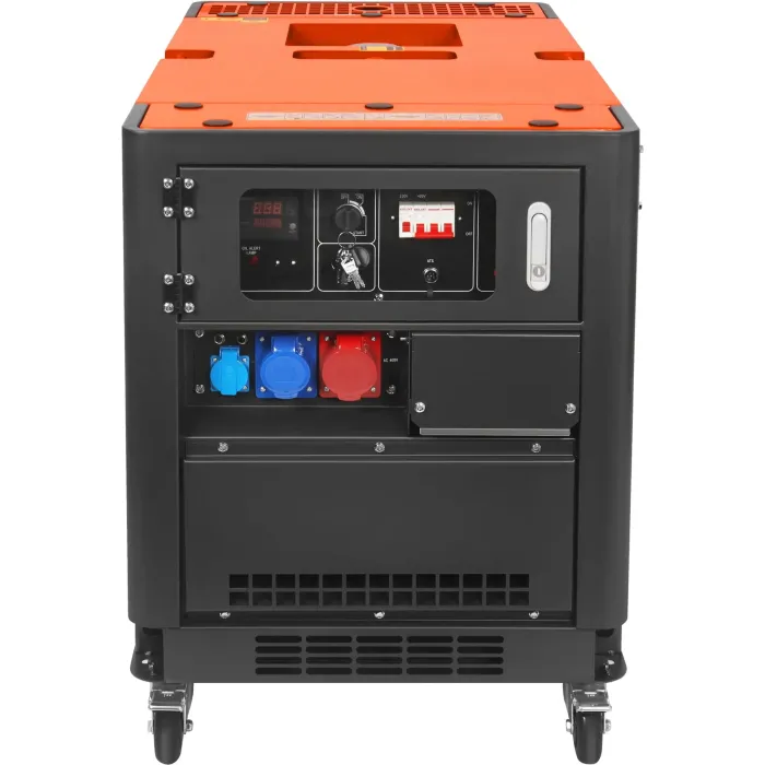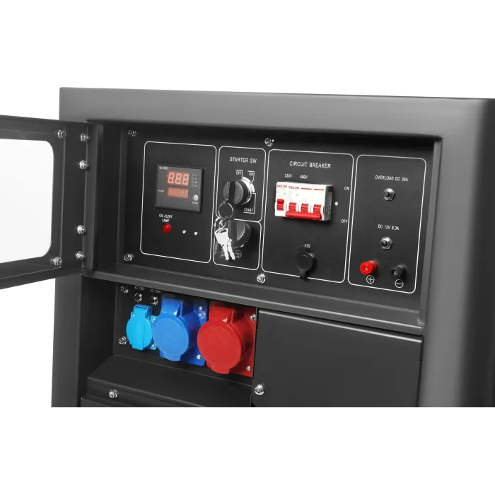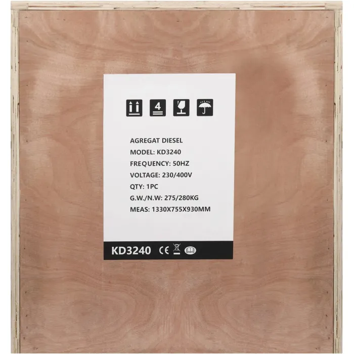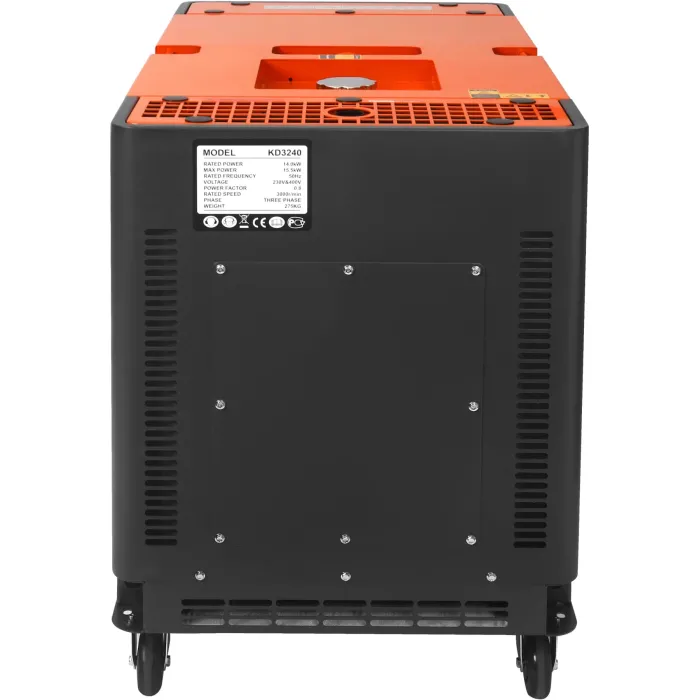 Моделът KD3240 е оборудван с три конектора: стандартен 230V, 230V 32A и трифазен 400A, което позволява гъвкаво регулиране на мощността според текущите нужди. Генераторът има вграден волтметър и брояч на часове, а фазите са защитени с предпазител. Освен това, устройството има ATS конектор за лесна интеграция с автоматични системи за превключване на захранването. Ръчното и електрическото стартиране и изисканият дизайн правят работата удобна, а работата на устройството остава тиха.