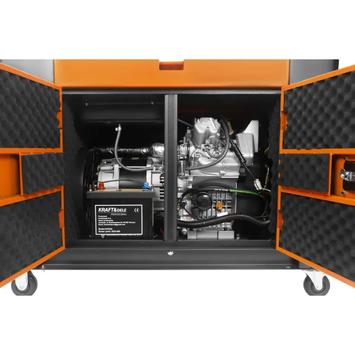 Мощен генератор от KRAFT&DELE, проектиран да осигурява стабилно захранване на устройства и инсталации, където надеждността и комфортът са от първостепенно значение. Неговият затворен, тих дизайн с пълно покритие ефективно намалява шума и защитава вътрешните компоненти, което го прави идеален за строителни площадки, работилници и като резервен източник на захранване.