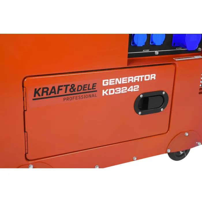 Моделът KD3242 предлага номинална мощност от 6,5 kW и максимална мощност от 7 kW, а благодарение на електрическия старт е удобен за ежедневна употреба. Генераторът е оборудван с два контакта 220V, един контакт 220V 32A и допълнителен изход 12V 8,3A. Вграденият волтметър и предпазният превключвател подобряват контрола и безопасността при работа. Контактът за автоматично превключване (ATS) е допълнително предимство. Автоматичният превключвател (ATS) е включен и се доставя в отделен пакет, което позволява удобно интегриране с електрическата система.