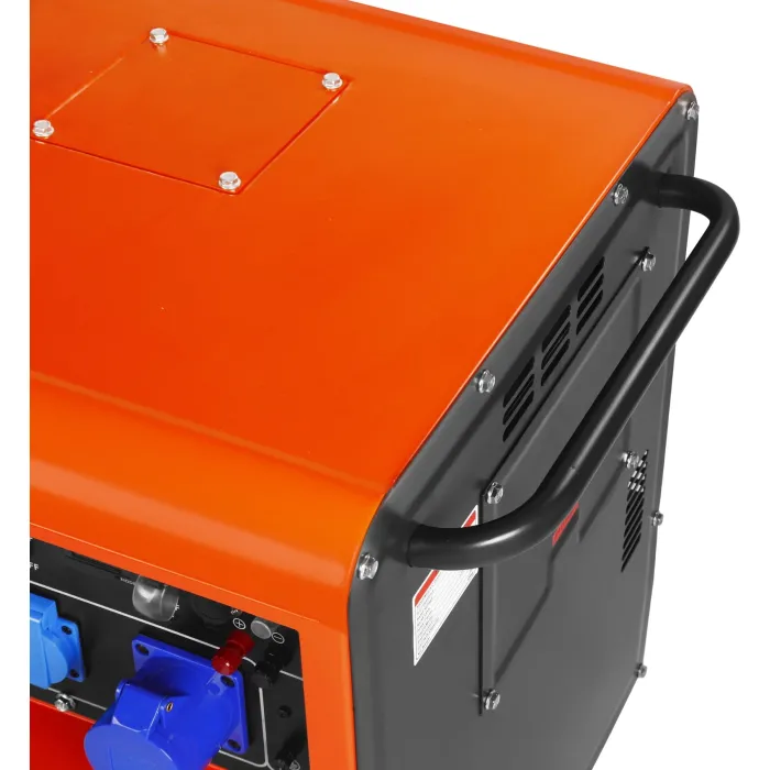 Модерен генератор от KRAFT&DELE, проектиран като надежден източник на еднофазно захранване 230V. Неговият затворен, тих дизайн ефективно намалява шума и предпазва компонентите от външни фактори, което го прави идеален за употреба в дома и работилницата, както и като авариен източник на захранване.