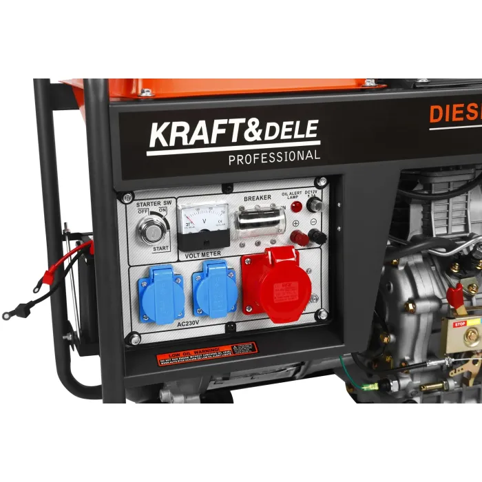 Мощен дизелов генератор от KRAFT&DELE, предназначен за захранване на оборудване в работилници, строителни площадки и монтажни работи, както и като авариен източник на захранване. Неговият четиритактов дизелов двигател с директно впръскване осигурява стабилна работа и икономичен разход на гориво, а трифазният му изход позволява свързване към широка гама от устройства.