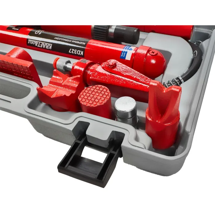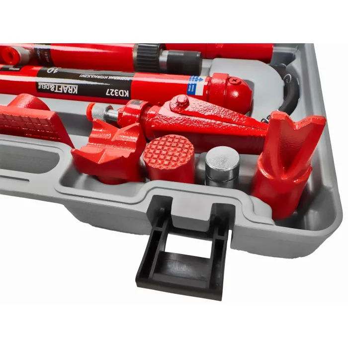 Необходим инструмент във всеки автосервиз, бояджийски цех и дори в домашен гараж „Направи си сам“. 10-тонната сила на затягане се постига благодарение на доказаната конструкция на хидравлична помпа, задвижвана от лостова помпа. Хидравличният разпръсквач Kraft &Dele KD327 е изключително издръжливо и здраво устройство с капацитет на налягане до 10 тона. Произведено с максимална прецизност, за да се гарантира дългосрочна работа.