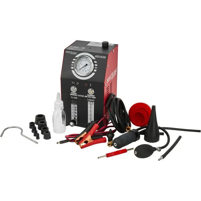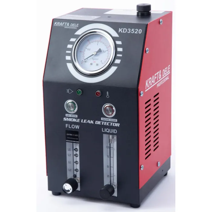 Устройството е предназначено за употреба в леки автомобили, мотоциклети и други тръбопроводни системи. Вградената въздушна помпа елиминира нуждата от външен източник на налягане, а компактният му дизайн го прави лесно за носене и употреба. Генераторът на дим KRAFT&DELE KD3520 е професионално диагностично устройство за откриване на течове в тръбопроводни системи на превозни средства и технически инсталации. Той позволява бързо, безопасно и прецизно локализиране на течове в системи като EVAP система, всмукателни, изпускателни, горивни, охладителни и вакуумни тръбопроводи.