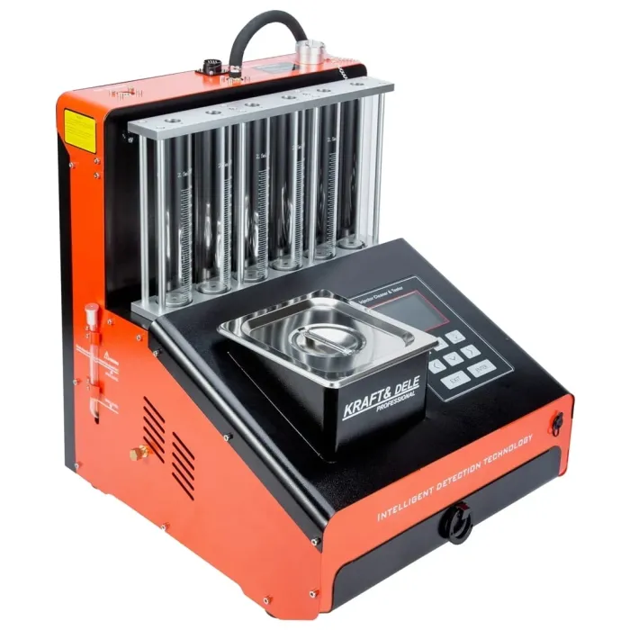 Професионално сервизно устройство, предназначено за цялостно почистване и тестване на горивни инжектори. То комбинира ултразвуково почистване с автоматични диагностични тестове, което позволява бърза и точна оценка на състоянието на инжекторите и възстановяване на пълната им функционалност.