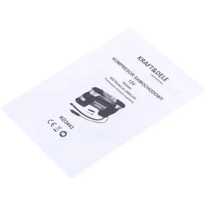 Компресорът KD3443 разполага с дигитален дисплей и функция за автоматично спиране при достигане на зададеното налягане, което значително повишава комфорта и безопасността. Максималното налягане от 100 PSI и мощността от 250 W позволяват ефективно напомпване на гуми – 13-инчова гума може да се напомпи за приблизително 2 минути, а 15-инчова гума за приблизително 5 минути. Вградената LED светлина позволява комфортна работа след залез слънце и при условия на ограничена видимост.