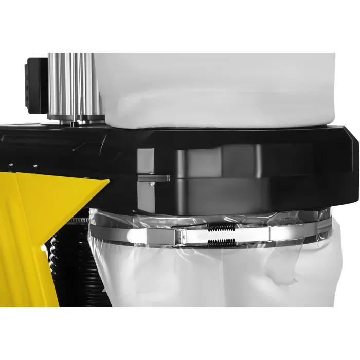 Благодарение на здравата си конструкция, високата всмукателна мощност и просторната филтърна торба, прахосмукачката осигурява ефективно почистване на работното място. Мобилните транспортни колела улесняват позиционирането на устройството навсякъде, а стоманеният корпус осигурява издръжливост и стабилност по време на работа.