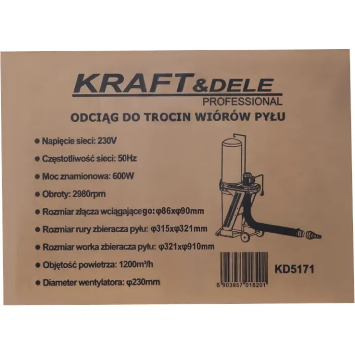 Аспиратор за дървени стърготини, стружки и прах KraftDele KD5171/ 600W/ 75 л