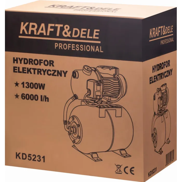 Мощна електрическа водна помпа от KRAFT&DELE, проектирана да осигурява стабилно водно налягане в домашни и търговски инсталации. С голям 24-литров резервоар и висок дебит от 6000 л/ч, устройството е идеално за приложения, изискващи постоянен достъп до вода и лекота на използване.