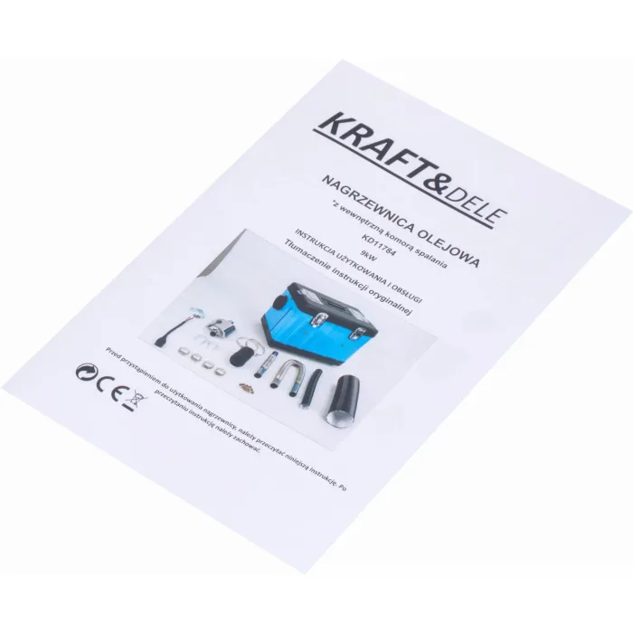 Mодерен 9 kW маслен отоплител от KRAFT&DELE, оборудван с вътрешна, затворена горивна камера. Тази конструкция предотвратява навлизането на отработени газове в отопляемото пространство, осигурявайки по-високо ниво на безопасност и чист, сух въздух на работното място.