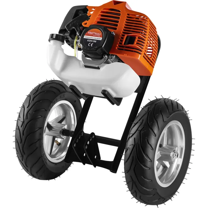 Ефикасен и здрав бензинов тример с колела от KRAFT&DELE, предназначен за употреба в райони, където традиционните колесни или райдерски косачки не могат да работят ефективно. Той се справя отлично на склонове, в гъсто обрасли райони, покрай огради и в труднодостъпни места, изискващи висока мощност и прецизност.
