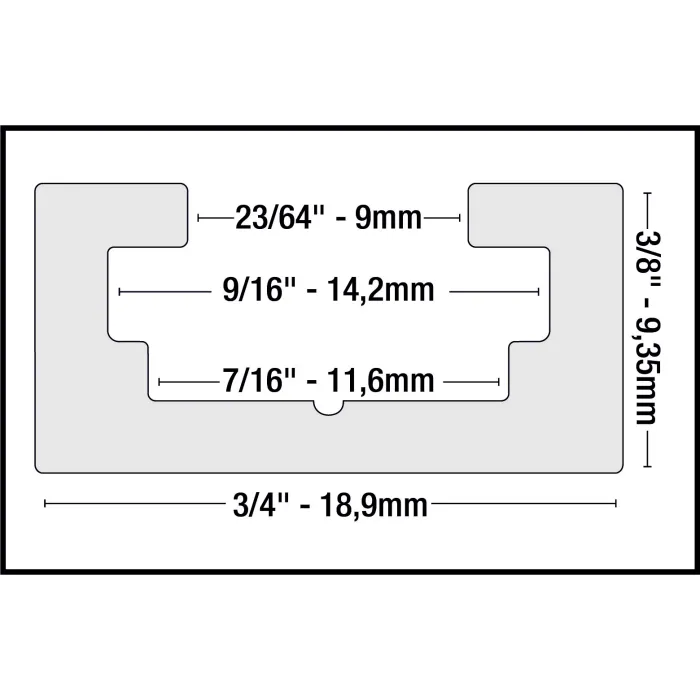 Ширина 3/4″ x дълбочина 3/8″ (19 мм x 9 мм)