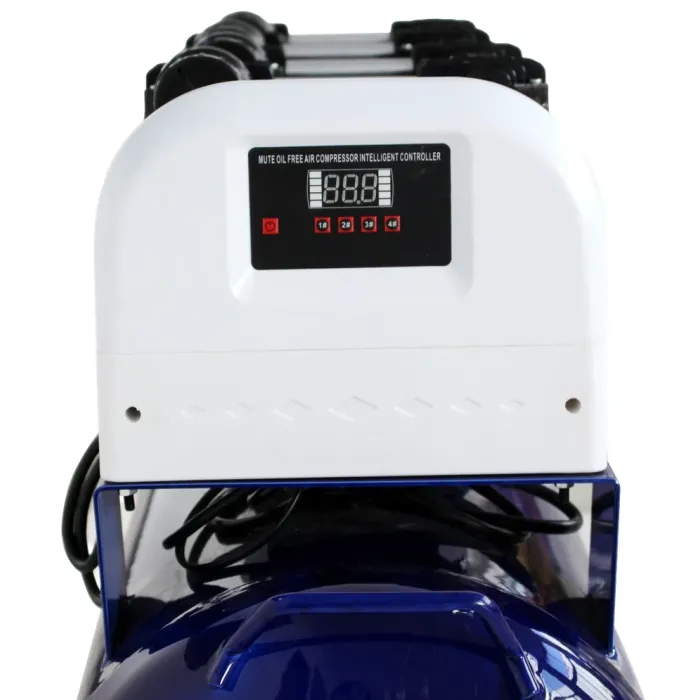 Главата на цилиндъра и ключовите компоненти на компресора са изработени от висококачествена желязна сплав, което позволява много високо съотношение на сгъстяване на въздуха и практически елиминира риска от течове. Безмасленият дизайн осигурява чист работен въздух, елиминира нуждата от маслени филтри и намалява изискванията за поддръжка. Модерен контролен панел и здрав резервоар за въздух, проектиран с мисъл за безопасност и дълъг експлоатационен живот, допълват пакета.
