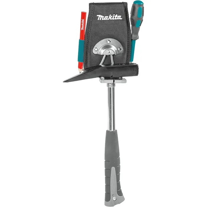 Притежава държач от неръждаема стомана със специален страничен отвор ("side gate"), който позволява лесно поставяне на чука, без да е необходимо да гледате към кобура. Висококачествен кобур за чук и инструменти, проектиран за бърз и лесен достъп по време на работа. Той е част от серията "Blue Collection" на Makita и се отличава със своята здравина и ергономичен дизайн.