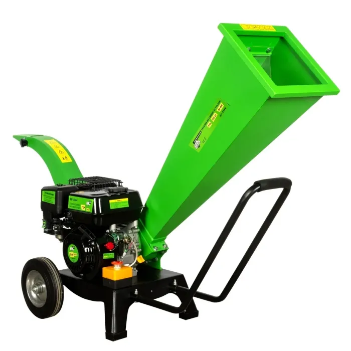 Това оборудване позволява бързо и ефективно раздробяване на сухи клони, листа и лози, превръщайки ги във фини дървени стърготини за по-късна употреба. Дробилка за клони, оборудвана с бензинов двигател с мощност 7 к.с. , предназначена за домакинства, овощни градини и ферми.
