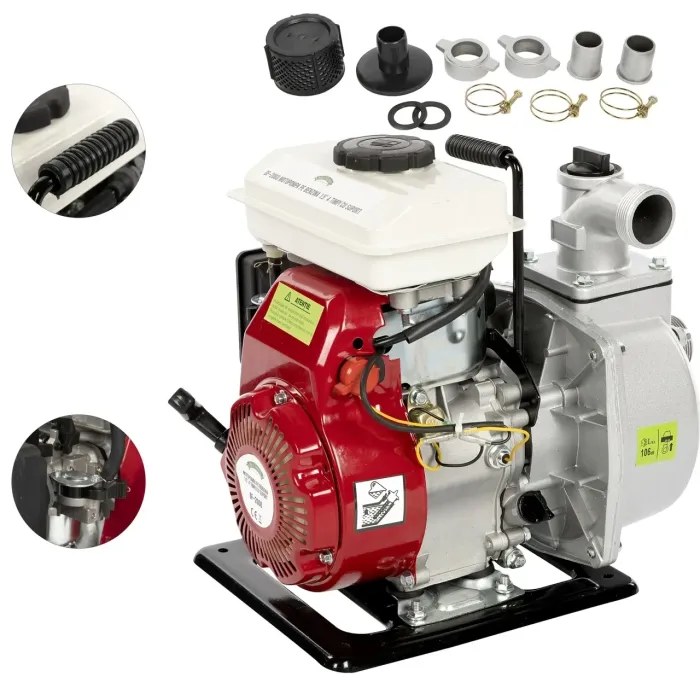 Конструктивно тази моторна помпа се задвижва от четиритактов бензинов двигател OHV (с въздушно охлаждане, един цилиндър и хоризонтален вал), водоабсорбираща помпа и сифон. Бензинова моторна помпа е здрав, ефикасен и надежден продукт, който изисква минимална поддръжка, с нисък разход на масло и бензин.