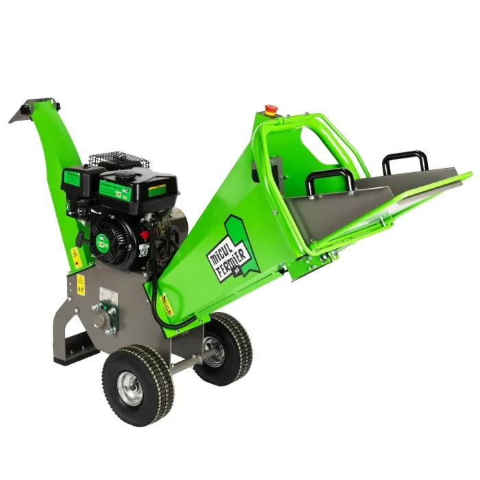 Този модел е снабден с пневматични колела и ергономична дръжка, което го прави лесен за маневриране в двора, градината или стопанството. Машината е проектирана с акцент върху безопасността на оператора и издръжливостта на режещите компоненти. Бензиновата дробилка за клони Micul Fermier MF-MO1006-S001-G01 е мощно и ефективно полупрофесионално съоръжение, проектирано за преработка на градински отпадъци, клони и храсти. Благодарение на здравата си конструкция и мощния четиритактов двигател, машината лесно превръща растителните остатъци в дървесен чипс (мулч), който може да се използва за настилка или компост.