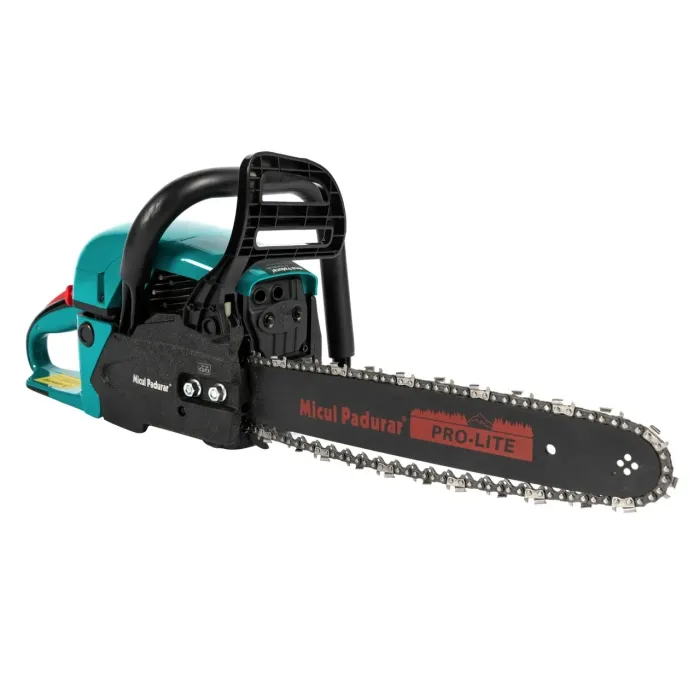 Със своя двигател от 52 CC и мощност от 2.9 к.с., този трион е перфектен за рязане на дърва за огрев, почистване на овощни градини или дейности по оформяне на дървесина. Бензиновият верижен трион Micul Pădurar GF-0908-S001-G02 е мощно, здраво и ефективно оборудване, проектирано чрез най-съвременни технологии, за да предложи резултати, близки до професионалните модели.