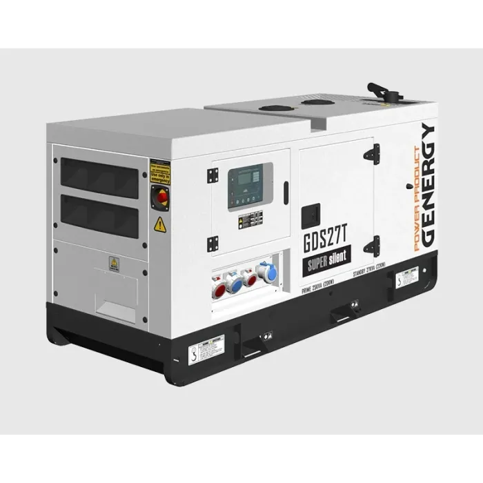 С номинална мощност от 25kVA (20kW) и ток от 39A на фаза, този агрегат е предназначен за захранване на големи производствени линии, болнични сектори, центрове за данни или земеделски стопанства с тежка трифазна механизация. Genergy GDS27T е флагманът на трифазната дизелова серия, проектиран за обекти с най-високи изисквания към енергийната сигурност и мощност.