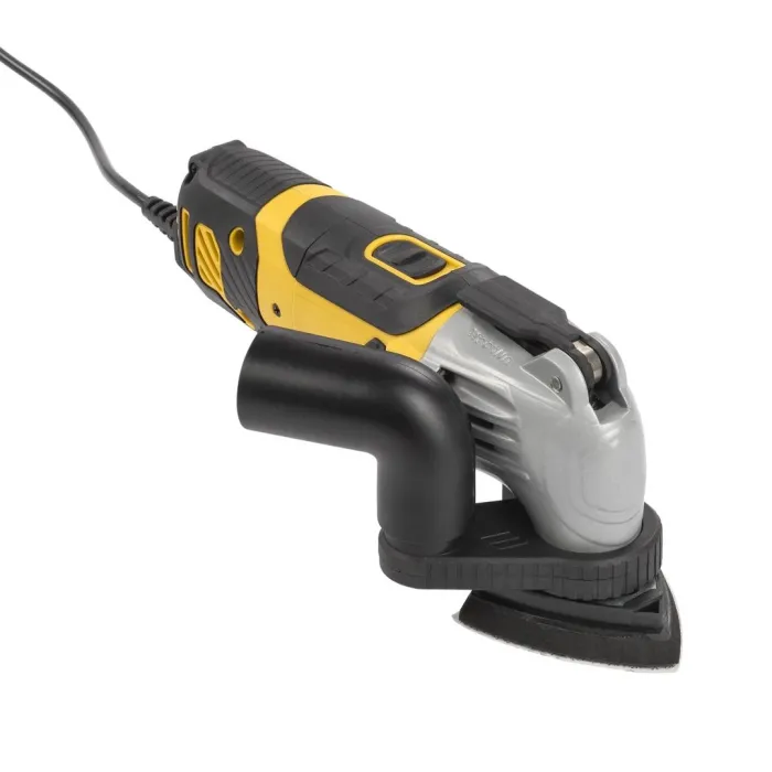 Възможностите на този впечатляващ 310 W мултифункционален инструмент са безкрайни. В зависимост от използваната приставка, можете да шлайфате парапет, да изрежете прорез за новата си мивка, да отрежете перваз по размер, да премахнете килими и много други.