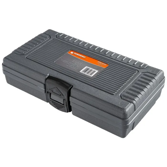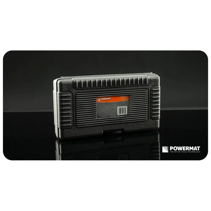Комплектът се доставя в транспортна кутия, която позволява безопасно съхранение на всички елементи. Всяка част има свое място, благодарение на което поддържате ред и ограничавате риска от загуба на части по време на работа или транспорт.