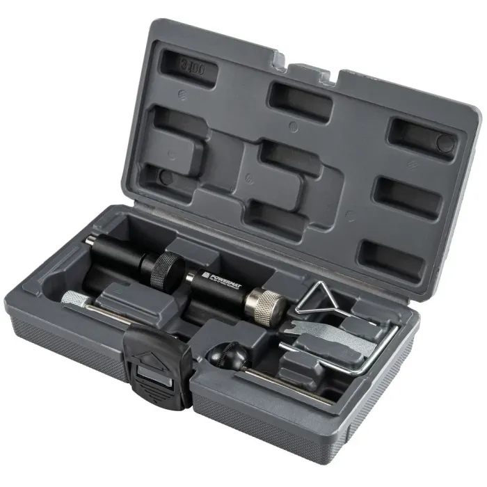 При смяна на ангренажен ремък всеки милиметър е от значение. С този комплект ще фиксирате коляновия вал, валовете и обтегача в сервизна позиция, така че да работите по-спокойно и без риск от преместване на запалването.