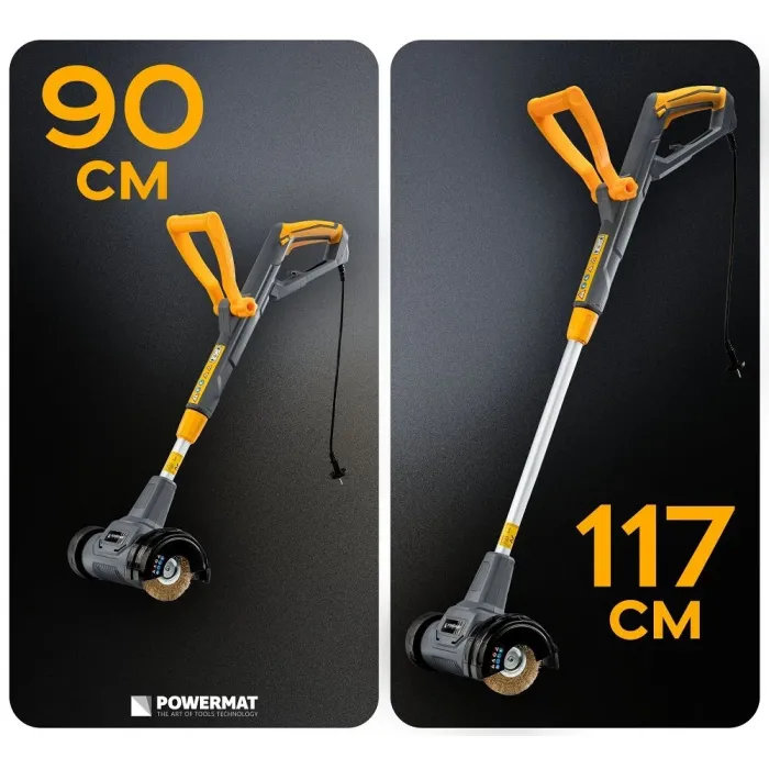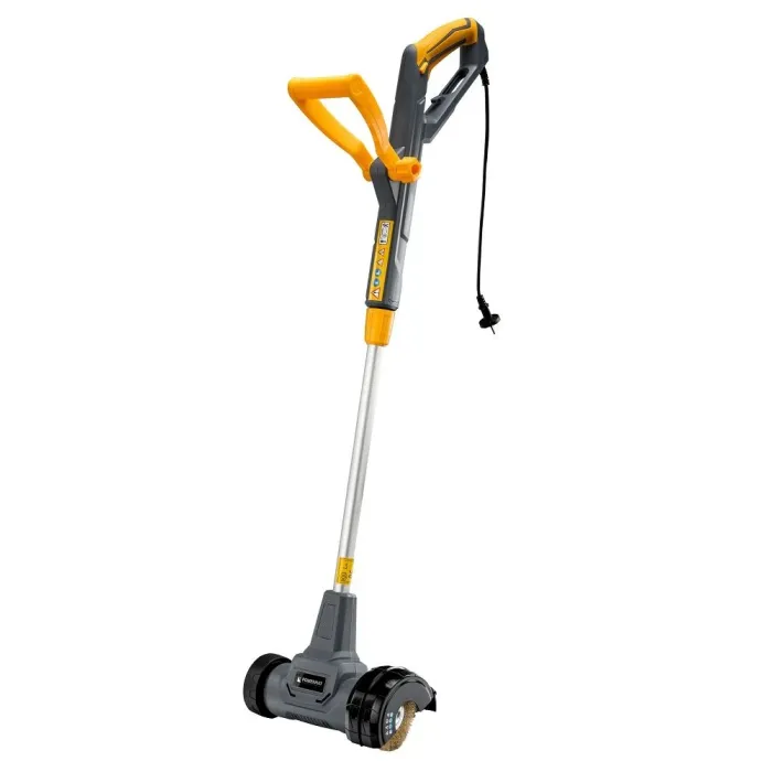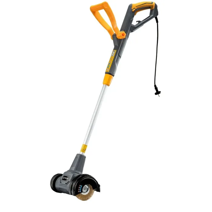 Електрическа машина за оформяне на краища на тревни площи и почистване на фуги, която Ви позволява бързо да отстранявате плевели, мъх и замърсявания от павета и бордюри. Благодарение на мощността от 800 W и работната ширина от 110 мм работите ефективно и прецизно, а телескопичният удължител позволява удобна работа в изправено положение.