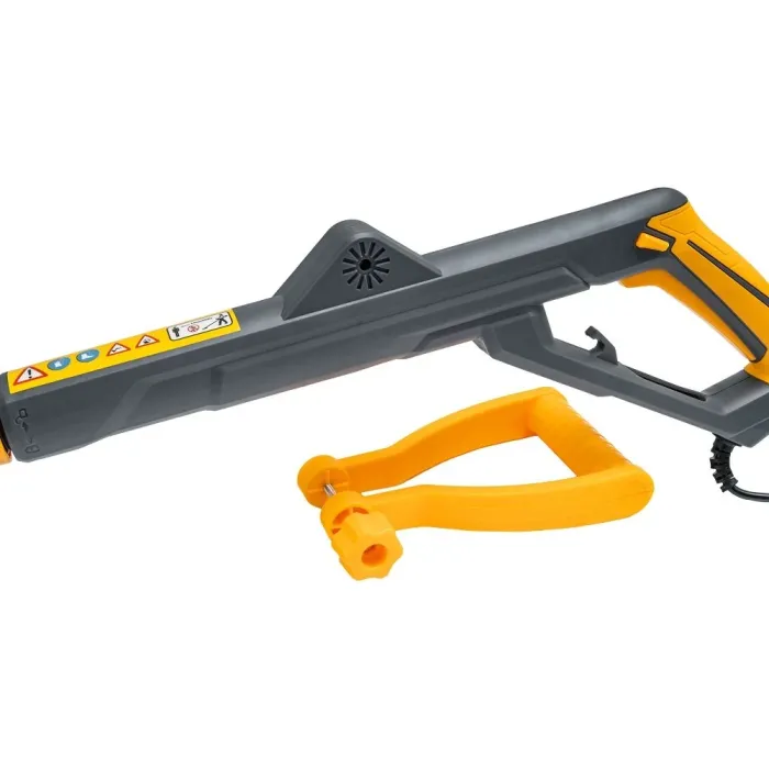 Двойна ръкохватка с регулиране Допълнителната ръкохватка, която се монтира на няколко степени на блокировка, позволява да адаптирате захвата към Вашата работна позиция. Държите машината с две ръце, което подобрява стабилността при водене по протежение на фугите. Печелите по-добър контрол над устройството по време на почистване на павета и бордюри.