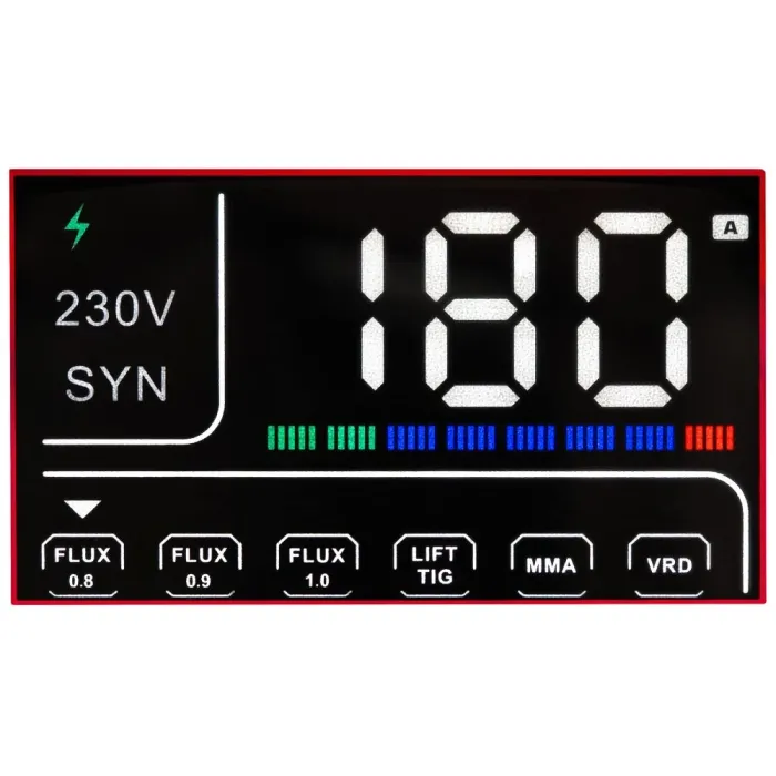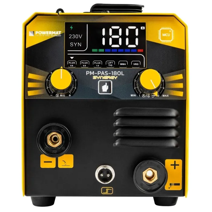 Диапазонът на тока е: FCAW 30–180 A, MMA 20–180 A и TIG LIFT 15–180 A, благодарение на което лесно ще настроите параметрите за избрания метод на заваряване.