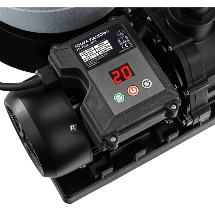 Вграденият LCD таймер позволява настройка на автоматична работа на помпата до 20 часа на ден, което позволява адаптиране на филтрацията към интензивността на ползване на басейна.
