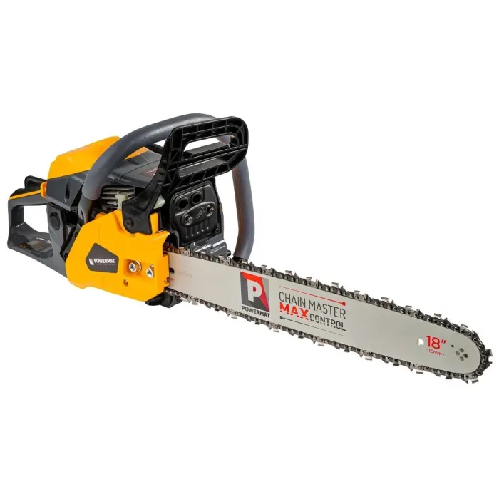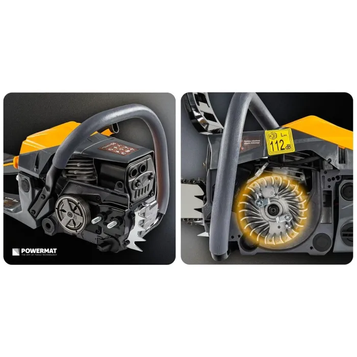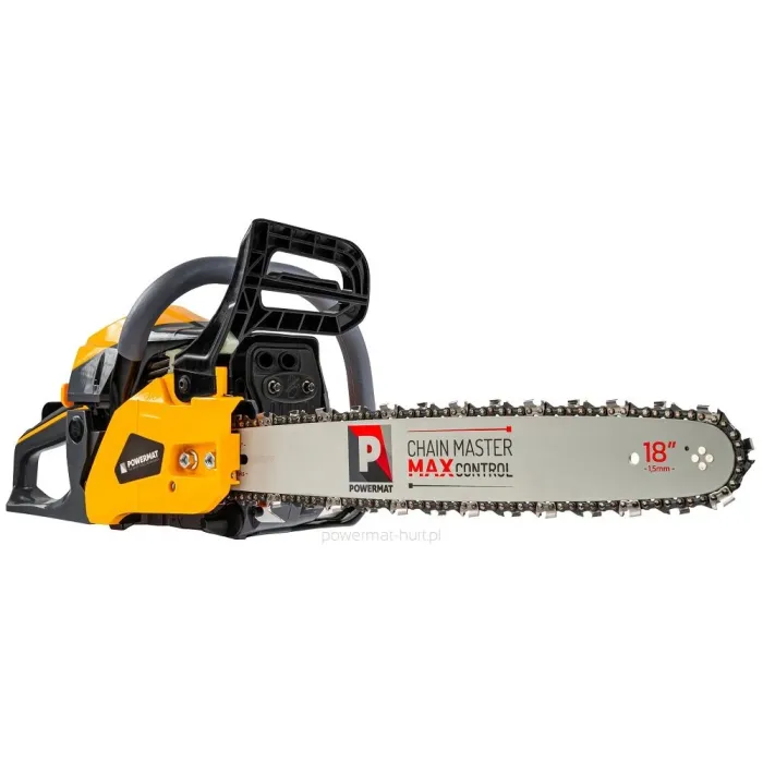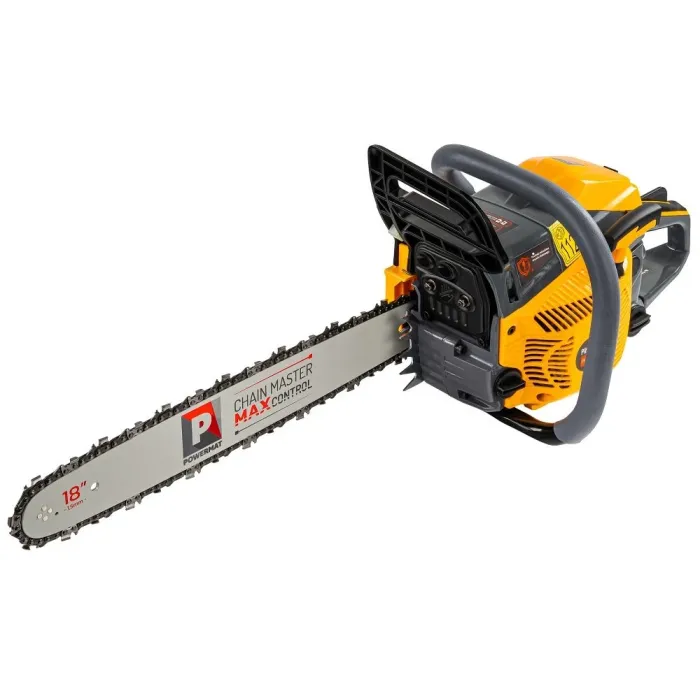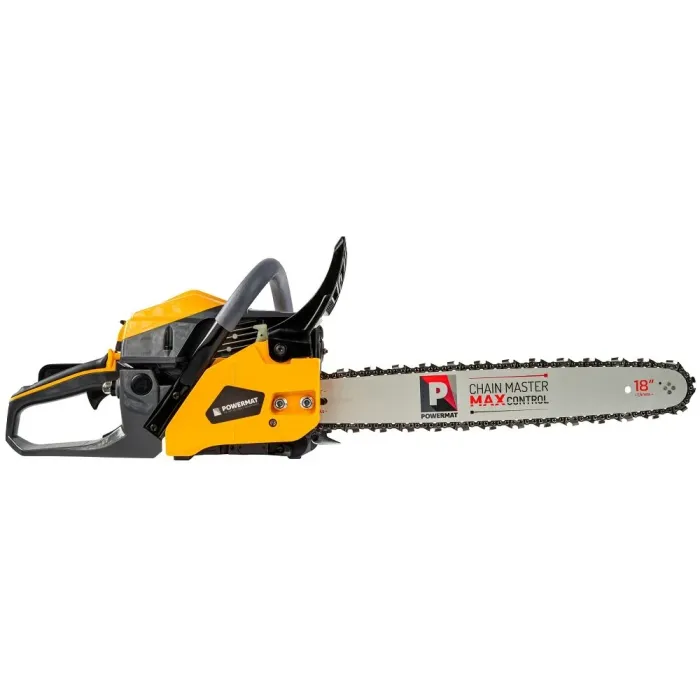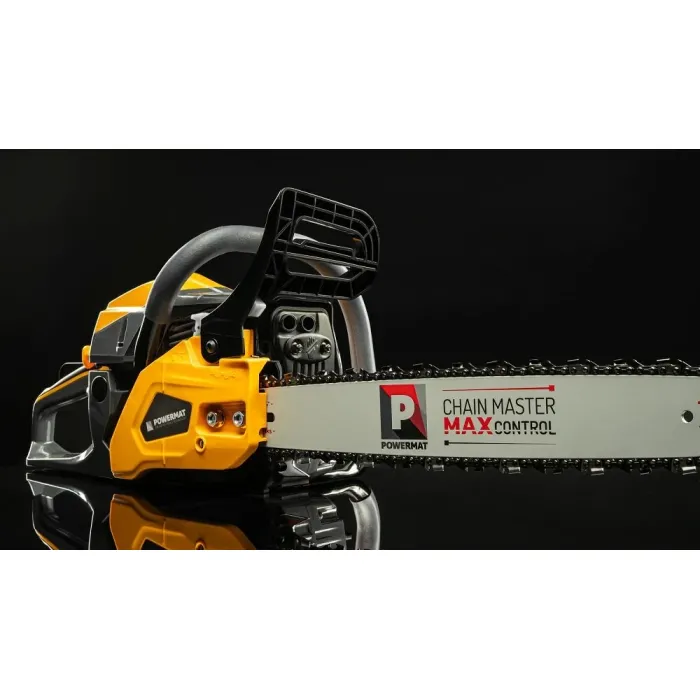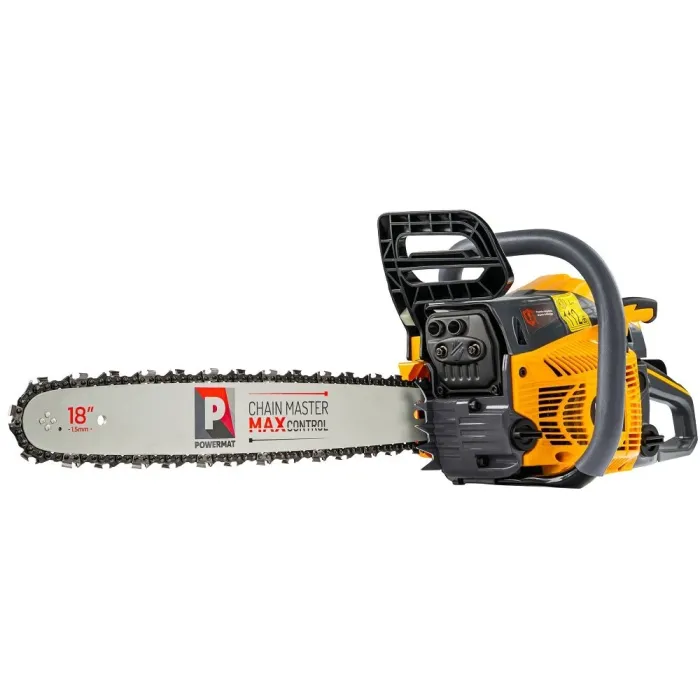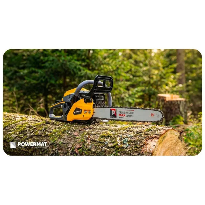Бензиновият трион Powermat е предназначен за поваляне на дървета, кастрене на клони и подготовка на дърва за огрев в градината, на вилата или при строителни дейности. Благодарение на мощния двигател и дългата шина ще свършите повече работа за по-кратко време, печелейки прецизност при рязане, стабилност и комфорт дори при интензивна употреба.