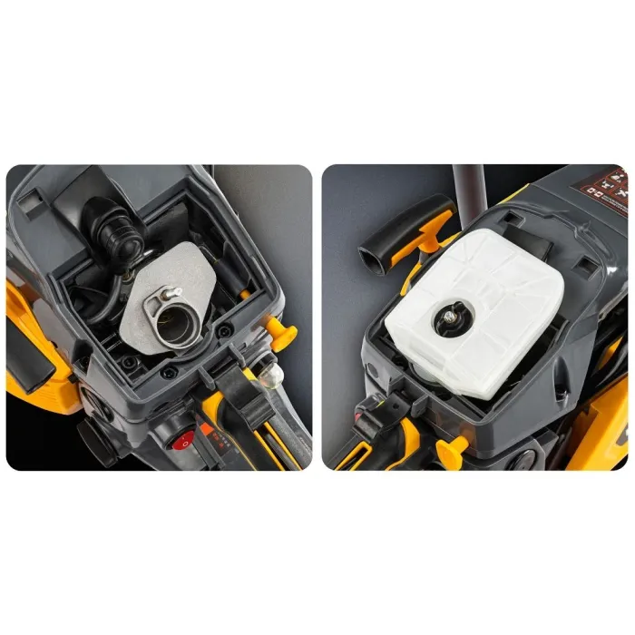 Бързият достъп до въздушния филтър и свещта Ви позволява да извършите основната поддръжка без допълнителни инструменти. Благодарение на това можете по-бързо да почистите или замените елементите и да се върнете към работа. Достъпът до карбуратора улеснява регулирането и поддържането на правилната работа на двигателя.
