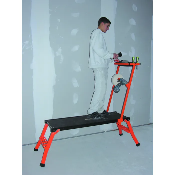 Този инструмент е проектиран за максимална мобилност и безопасност при работа на малка височина, като е изключително ценен за шпакловчици, бояджии и монтажници на сухо строителство. Това е професионална сгъваема работна платформа на Mondelin, модел 500530.