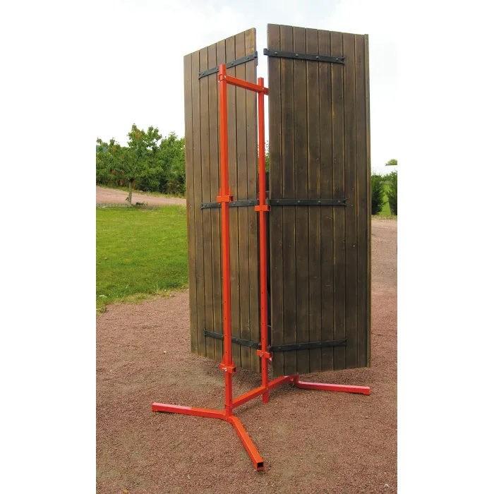 Оборудвана с регулируеми панти, подходящи за окачване на капаци с всякакви размери – от малки прозорци до балконски врати и жалузи. Благодарение на малката си опорна база, стойката се инсталира лесно на всякакви терени, включително в тесни или натоварени работни пространства. Позволява боядисването на 3 чифта врати/капаци наведнъж, което значително оптимизира работния процес и пести време. Конструкцията гарантира отлична стабилност дори когато е натоварена само с един чифт капаци. Дизайнът позволява лесно съхранение, без да заема излишно място в работилницата или склада след приключване на работа.