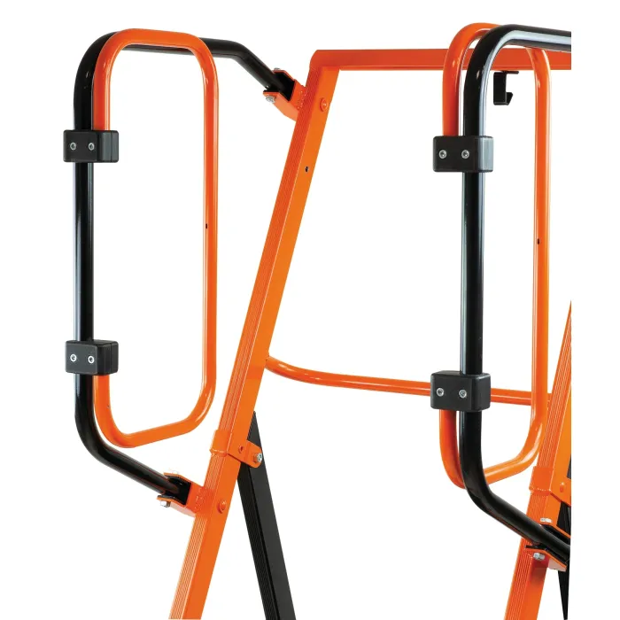 Сгъваем твърд парапет: Много по-практичен и бърз за фиксиране от предпазните ремъци или вериги. Оборудван с твърда защитна врата за максимална сигурност.