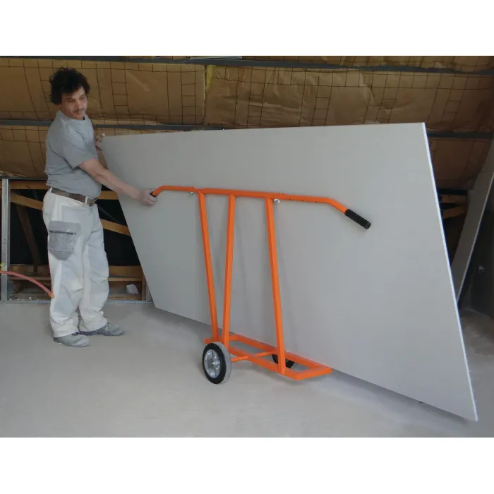 Оборудвана с 2 гумени колела, които осигуряват плавно движение и стабилност дори при пълно натоварване. Две въртящи се и телескопични дръжки, които се регулират в диапазон от 1,40 m до 2,00 m, за да се адаптират към височината на оператора и спецификата на товара. Проектирана за тежки натоварвания, количката издържа максимално тегло до 900 kg. Идеална за пренасяне на листове гипсокартон, дървени плоскости, ПДЧ, MDF и други широкоформатни панели.