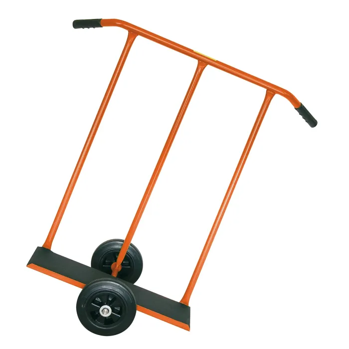 Идеална за пренасяне на листове гипсокартон, дървени плоскости, ПДЧ, MDF и други широкоформатни панели. Оборудвана с 2 гумени колела, които осигуряват плавно движение и стабилност дори при пълно натоварване. Двуколесна количка за транспортиране на плочки с максимално 450 кг. Гумирана основа за защита на транспортираните материали.