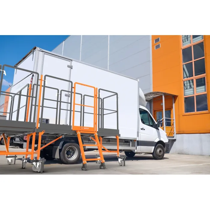 Маневреност: Платформата е оборудвана с 4 устойчиви на пробиване колела, въртящи се на 360°. Снабдени са със спирачки и стабилизатори, които се монтират бързо благодарение на системата Clip&Go.