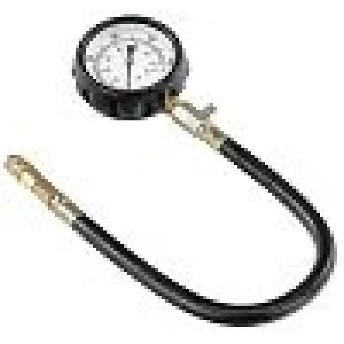 Този тестер измерва 0–70 bar / 0–1000 PSI и влиза през подгревните свещи или инжекторите благодарение на адаптерите.
