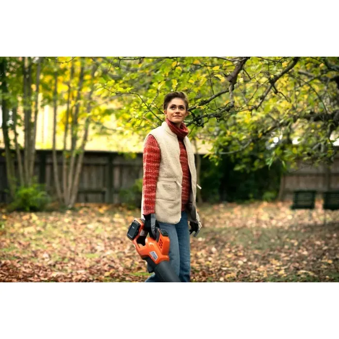 Благодарение на компактния дизайн, ниското тегло от само 2 кг и трите регулируеми настройки за мощност на духане, ще се насладите на максимална гъвкавост и лекота на използване. Husqvarna 120iB е безжична въздуходувка за листа, идеална за малки градини, вътрешни дворове и алеи.