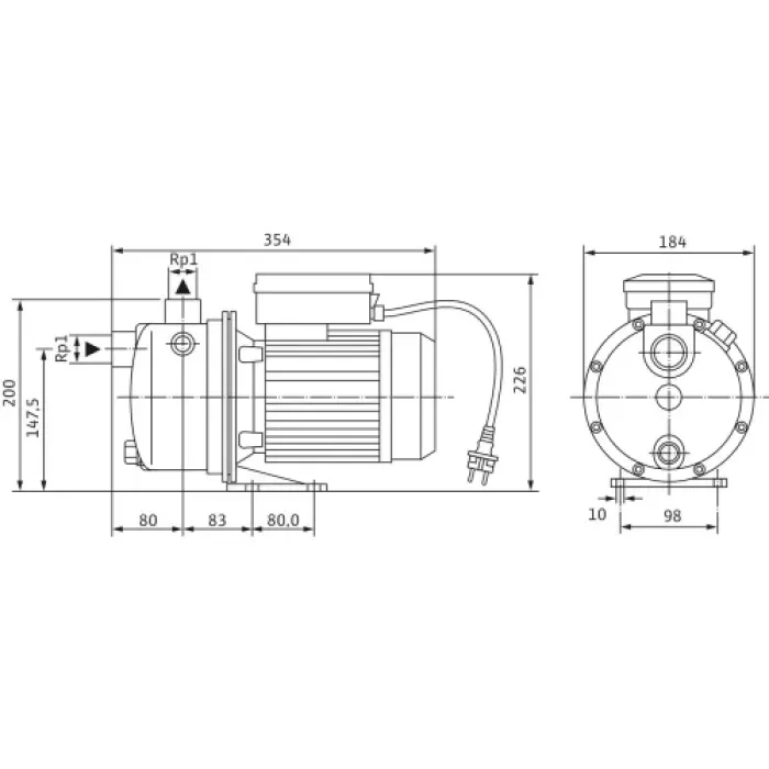 Самозасмукващо натоварване на помпата до 8 m благодарение на вградената система Venturi.