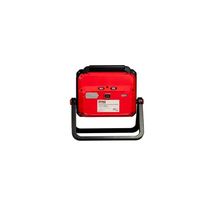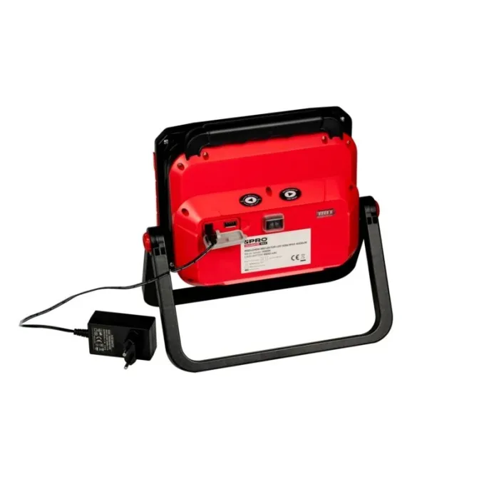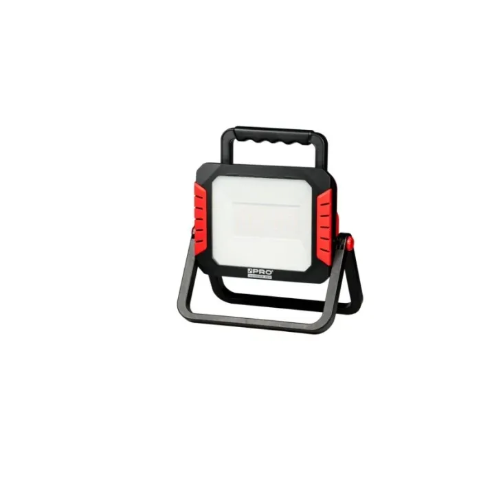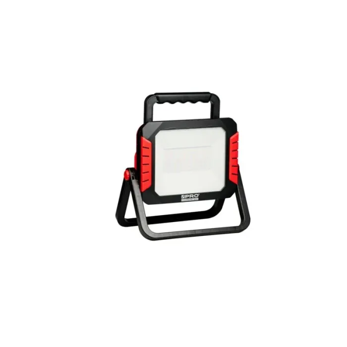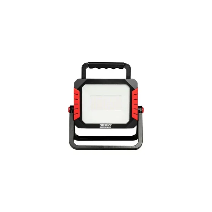 Има степен на защита IP54, което го прави устойчив на атмосферни условия и прах. Снабден с дръжка за лесно носене. Възможност за монтаж на статив, благодарение на включената дръжка. Индикатор за зареждане на батерията. Прожектор, оборудван с 60 диода 2835 SMD 50 W. Максимална работна яркост от 4000 лумена. Прожектор, изработен от издръжлив ABS и алуминий.
